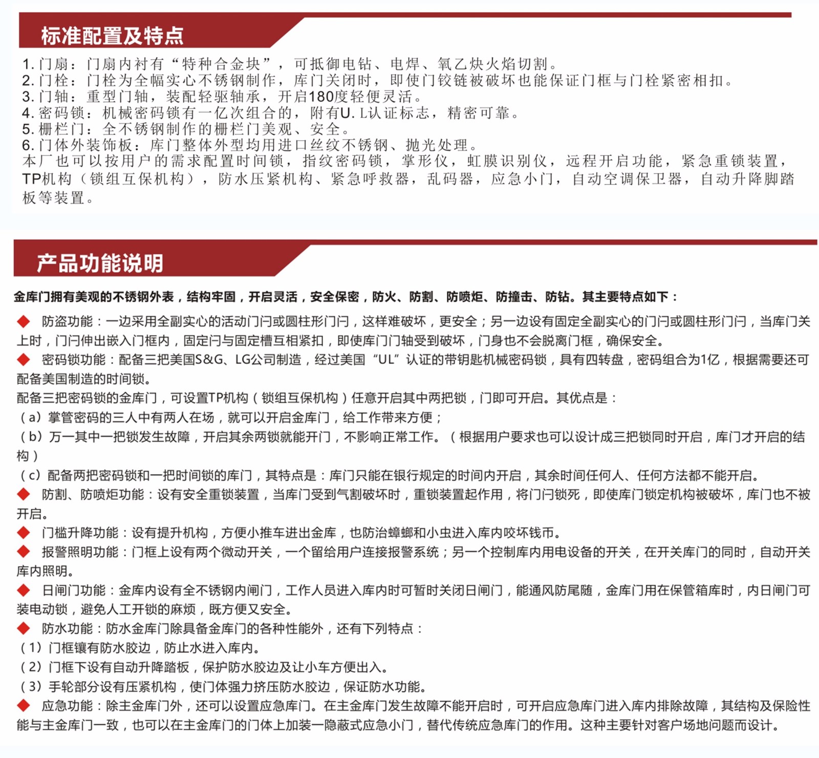 特殊性能:防盜、防火、防水、防鉆、防切割