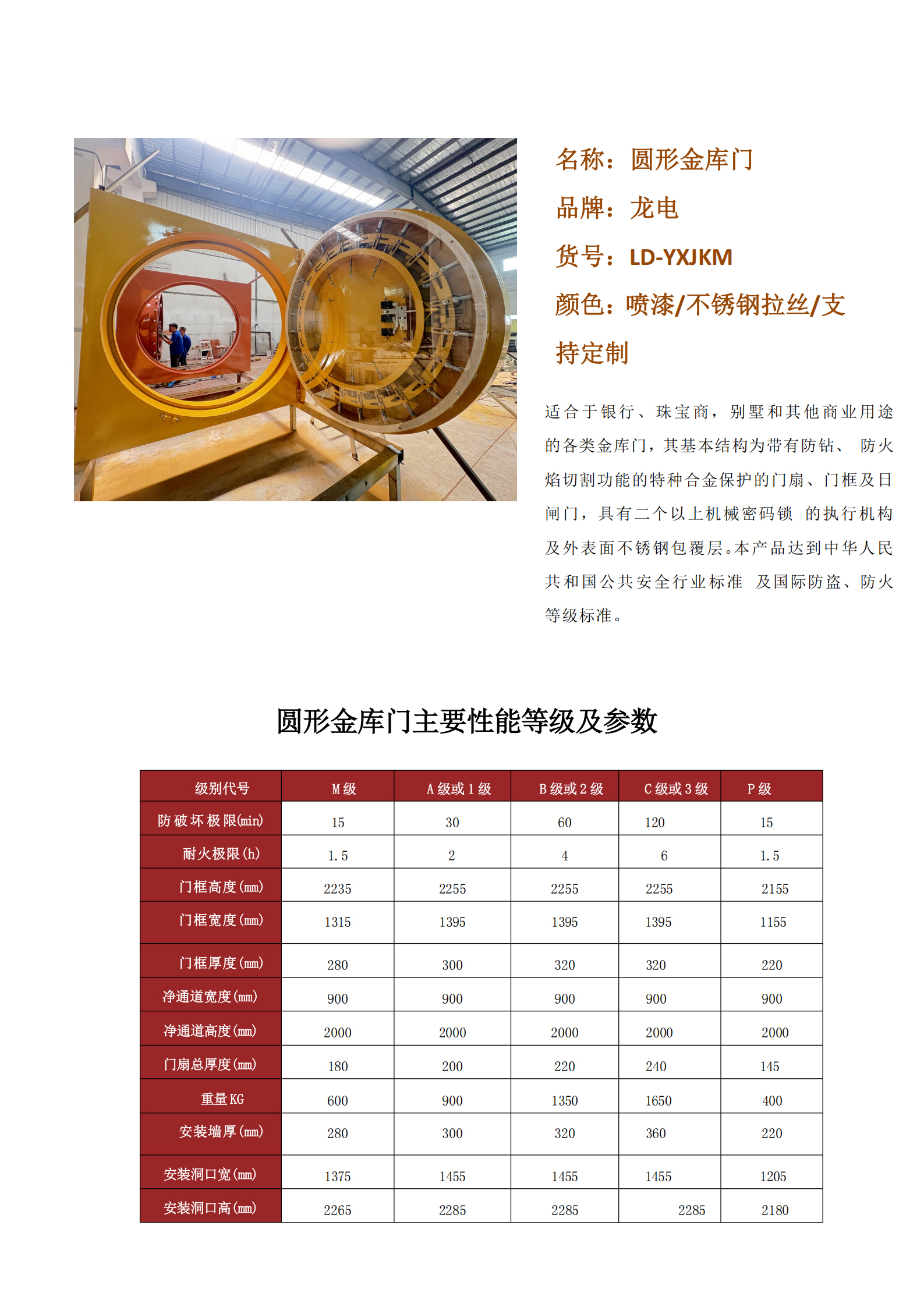 產(chǎn)品名稱:龍電-銀行圓形金庫門